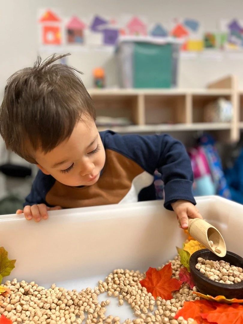Children visit centers as they explore materials, problem solve, practice skills, and build on ideas through provocations. Provocations allow children to explore tools and materials in an open ended way - often igniting engagement and curiosity in our seasonal study. During this time, children may work individually or in a small group with the educator to strengthen developmental skills in all domains.